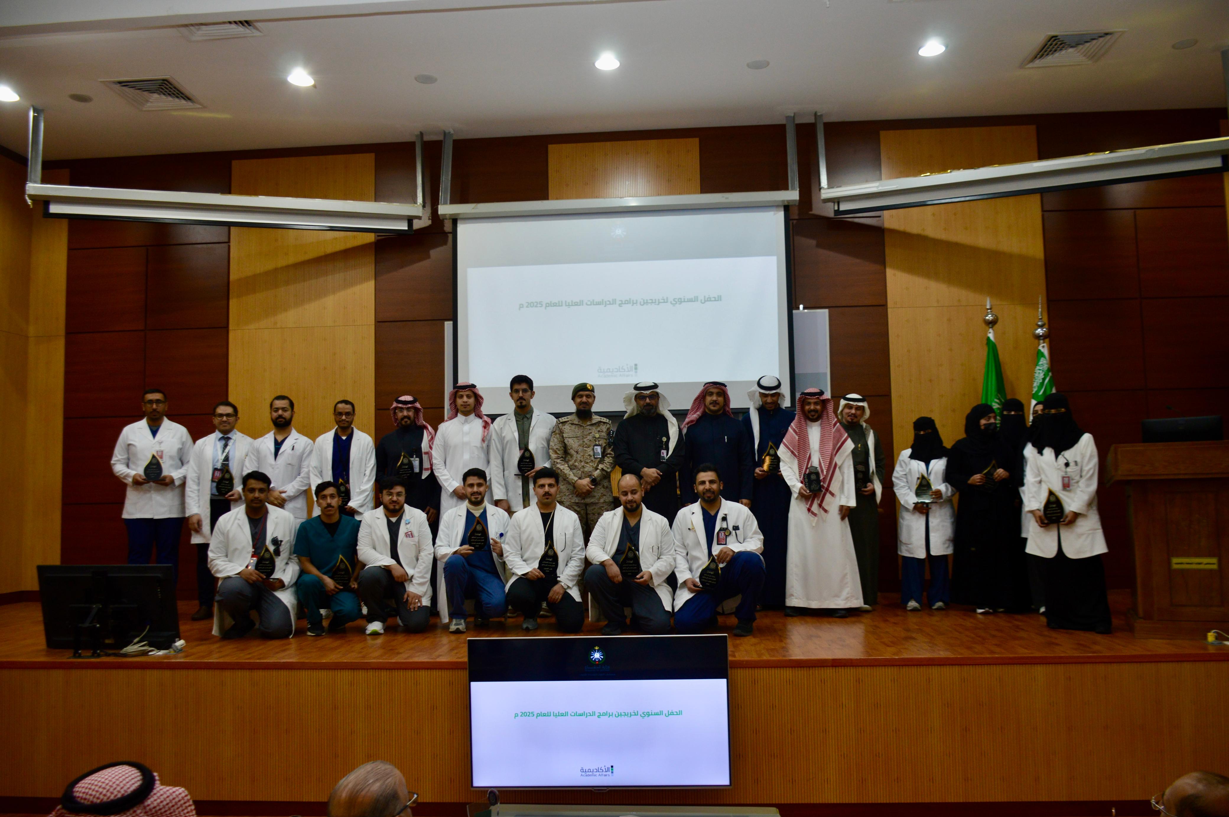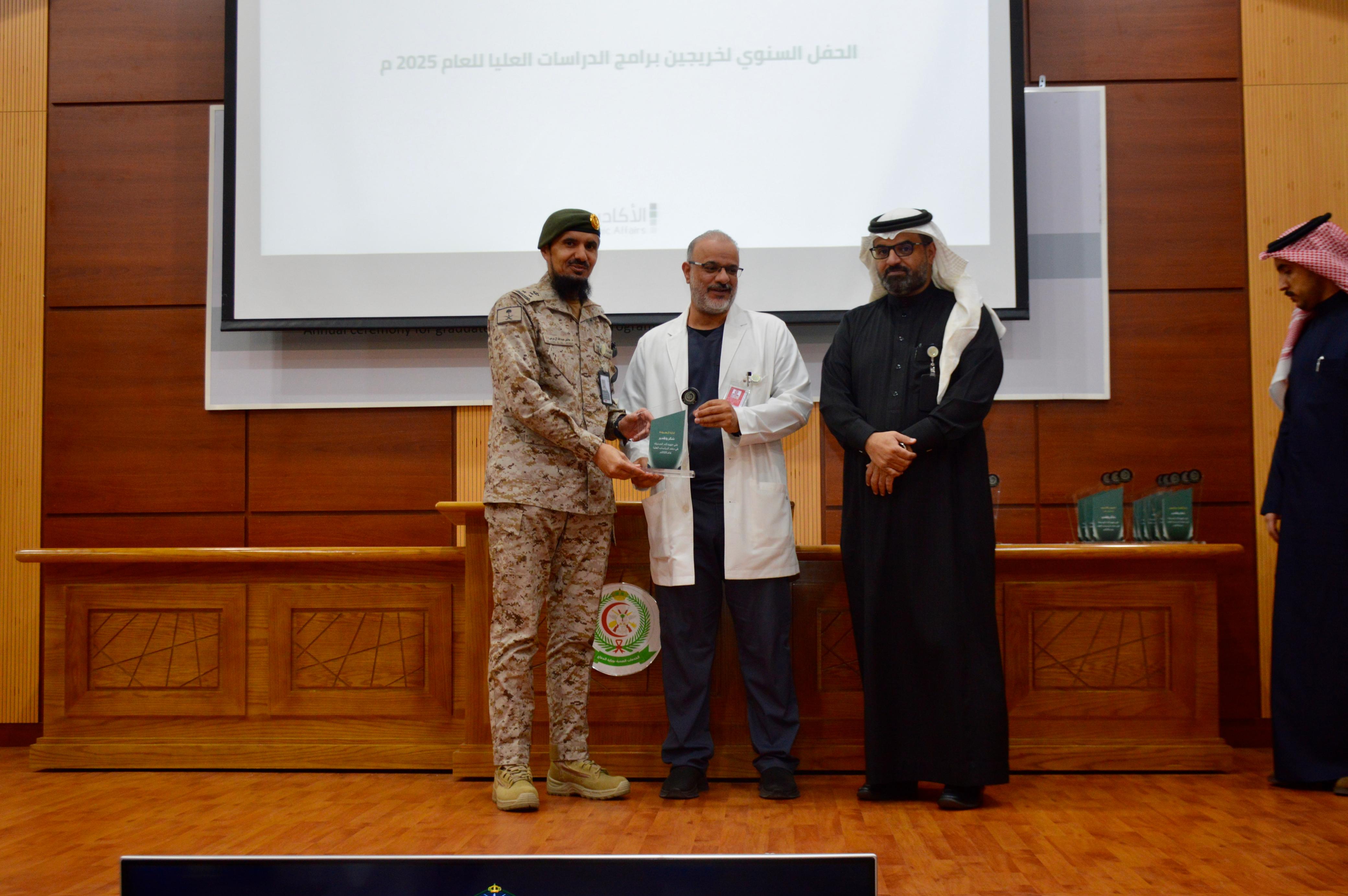 احتفى مستشفى القوات المسلحة بالجنوب بخريجي الدراسات العليا للعام الأكاديمي 2024–2025م من برامج الزمالة السعودية والبورد السعودي إلى جانب الموفدين والمبتعثين داخل وخارج المملكة، وذلك في حفل يعكس اهتمام المستشفى بتنمية رأس المال البشري وتعزيز منظومة التعليم والتدريب الطبي.