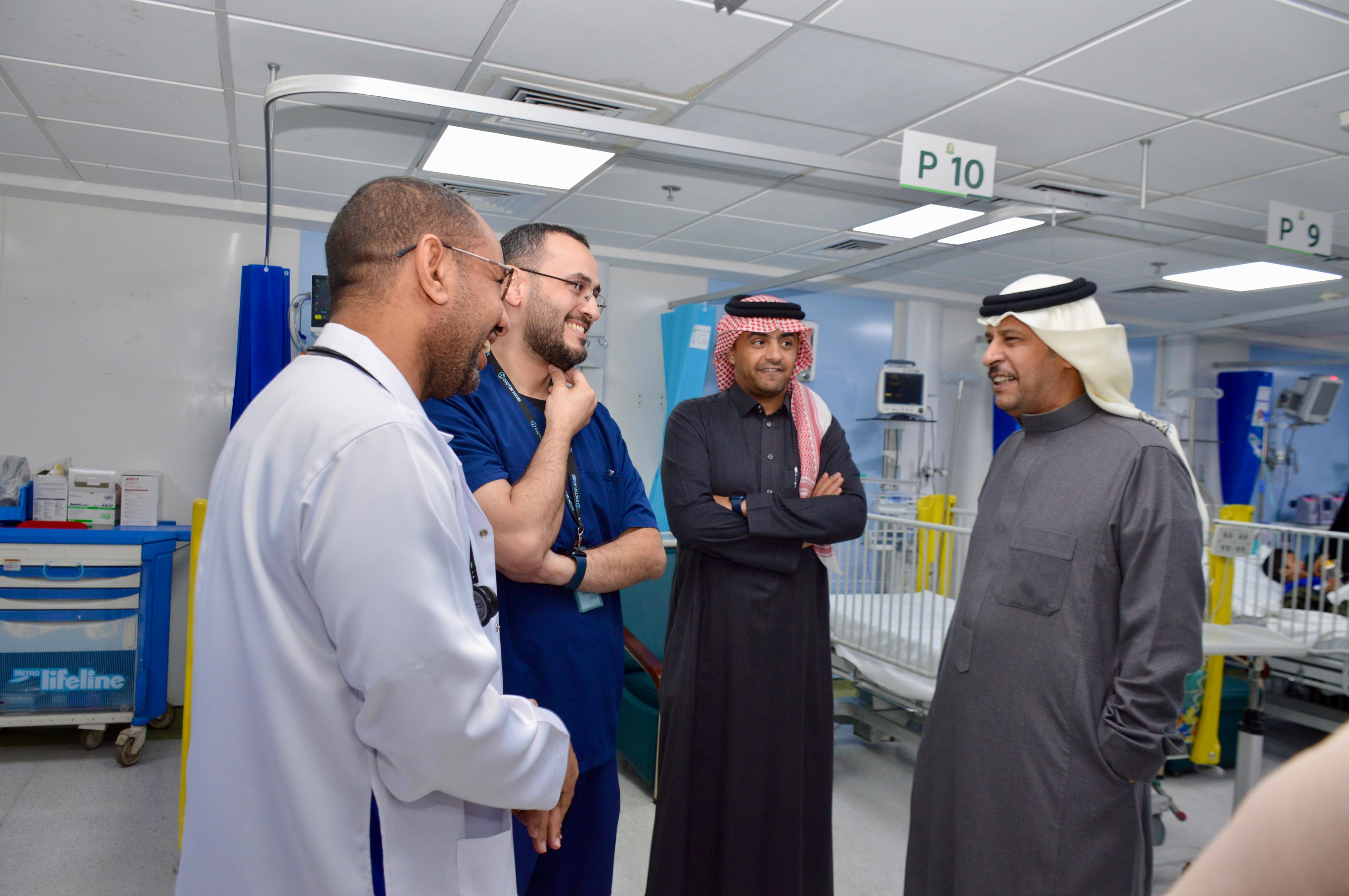 وشملت الجولة عدداً من الأقسام الحيوية خلال فترة الدوام المسائي حيث التقى سعادته بالكوادر الطبية والإدارية المناوبة وأستمع إلى إحتياجاتهم ومقترحاتهم مشيداً بجهودهم في ضمان استمرارية الخدمات الصحية على مدار الساعة.