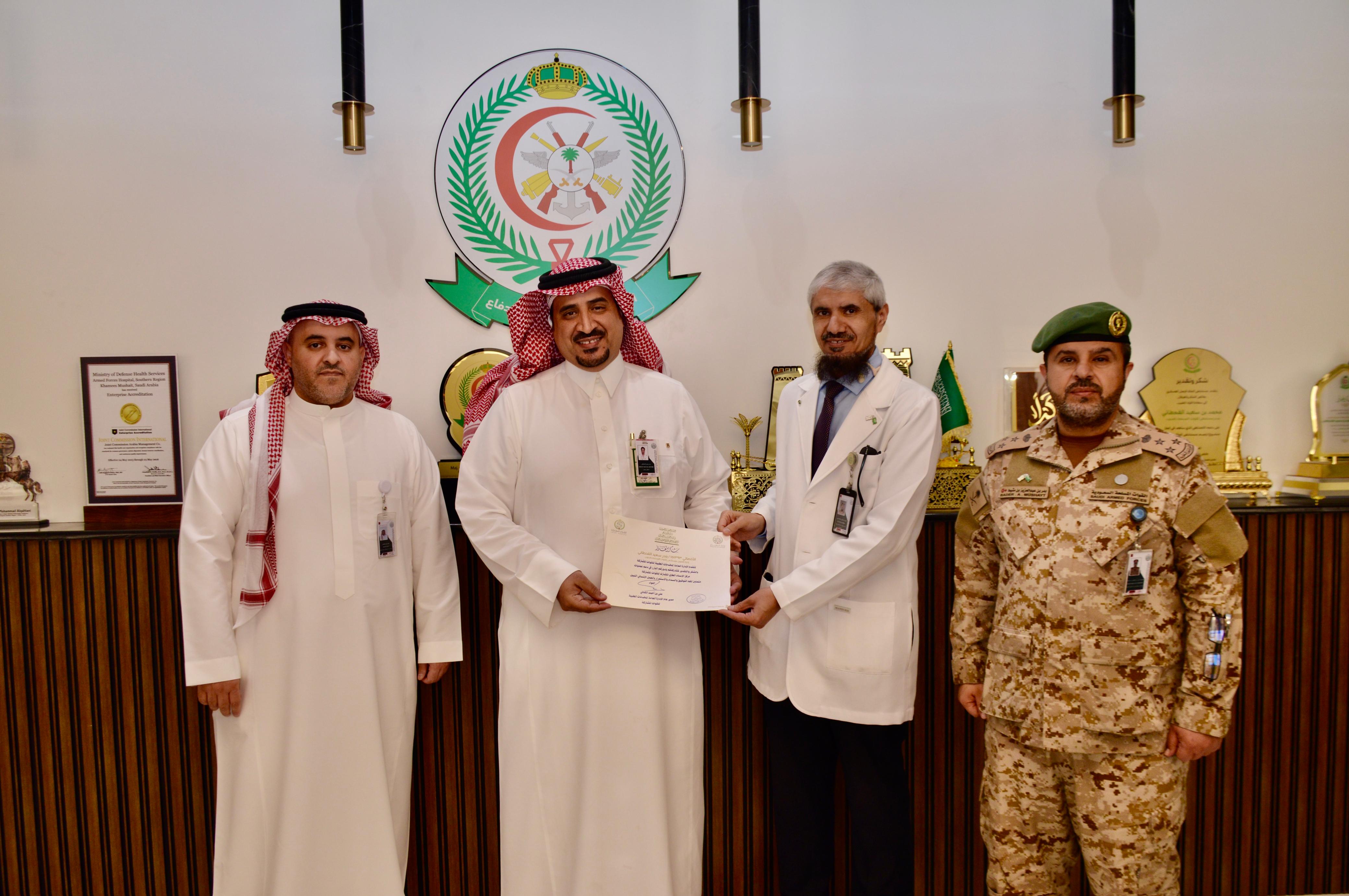 كرّم مدير مستشفى القوات المسلحة بالجنوب بالنيابة العميد الطبيب عايض بن عبدالله آل مرضي منسوبي إدارة التموين، تقديراً لجهودهم المتميزة ودورهم البارز في تجهيز ودعم مركز الإسناد الطبي المشترك بقيادة القوات المشتركة، وذلك نظير ما قدموه من عمل احترافي أسهم في تأمين وتوفير الأدوية والمستلزمات الطبية اللازمة بكفاءة عالية.