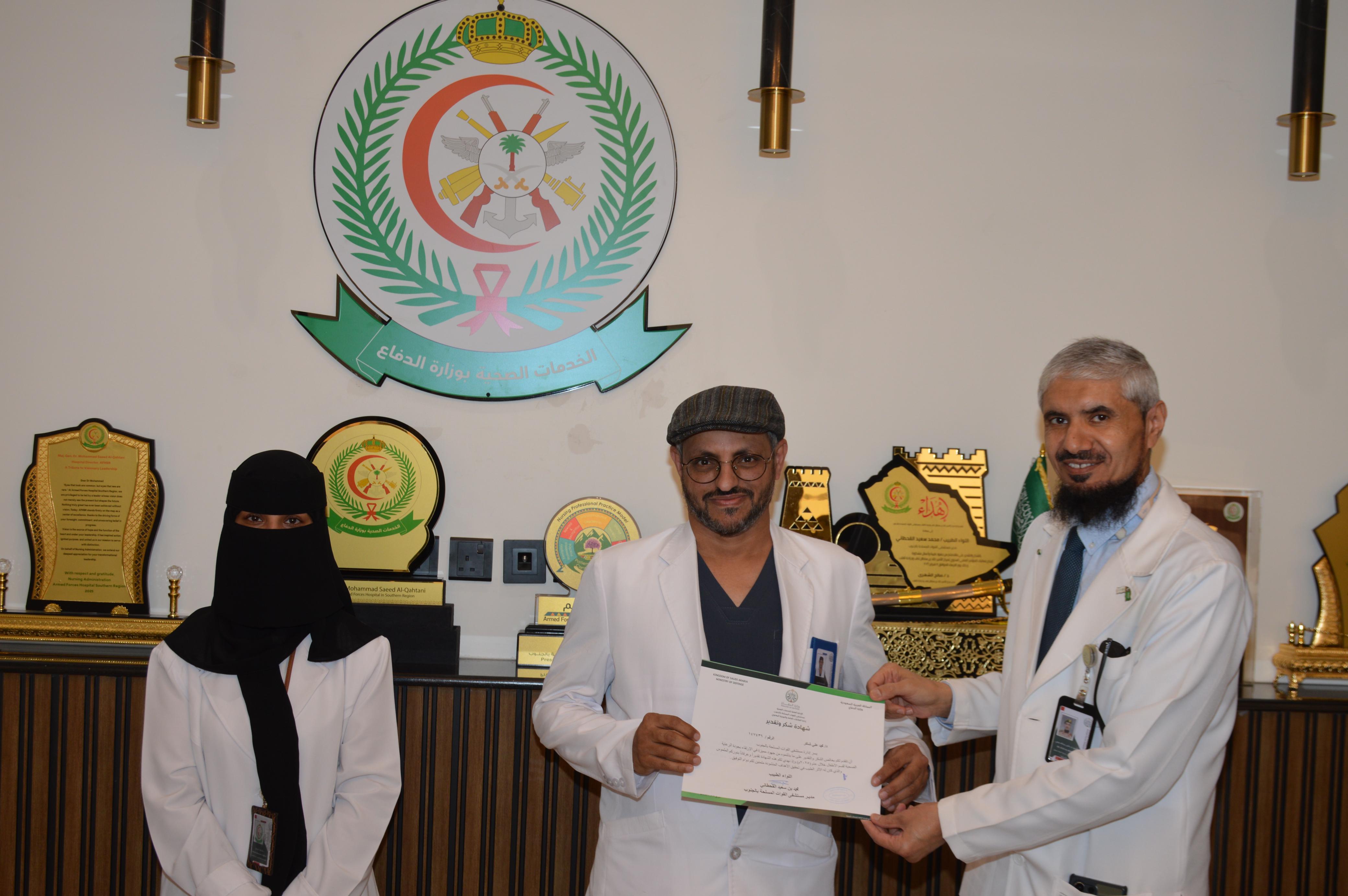 وأوضح سعادته خلال التكريم أن هذا التقدير يأتي في إطار حرص إدارة المستشفى على دعم وتحفيز الكفاءات المتميزة وتعزيز ثقافة التميز والإبداع في بيئة العمل بما يسهم في الارتقاء بمستوى الأداء وتحقيق أفضل معايير الرعاية الصحية.