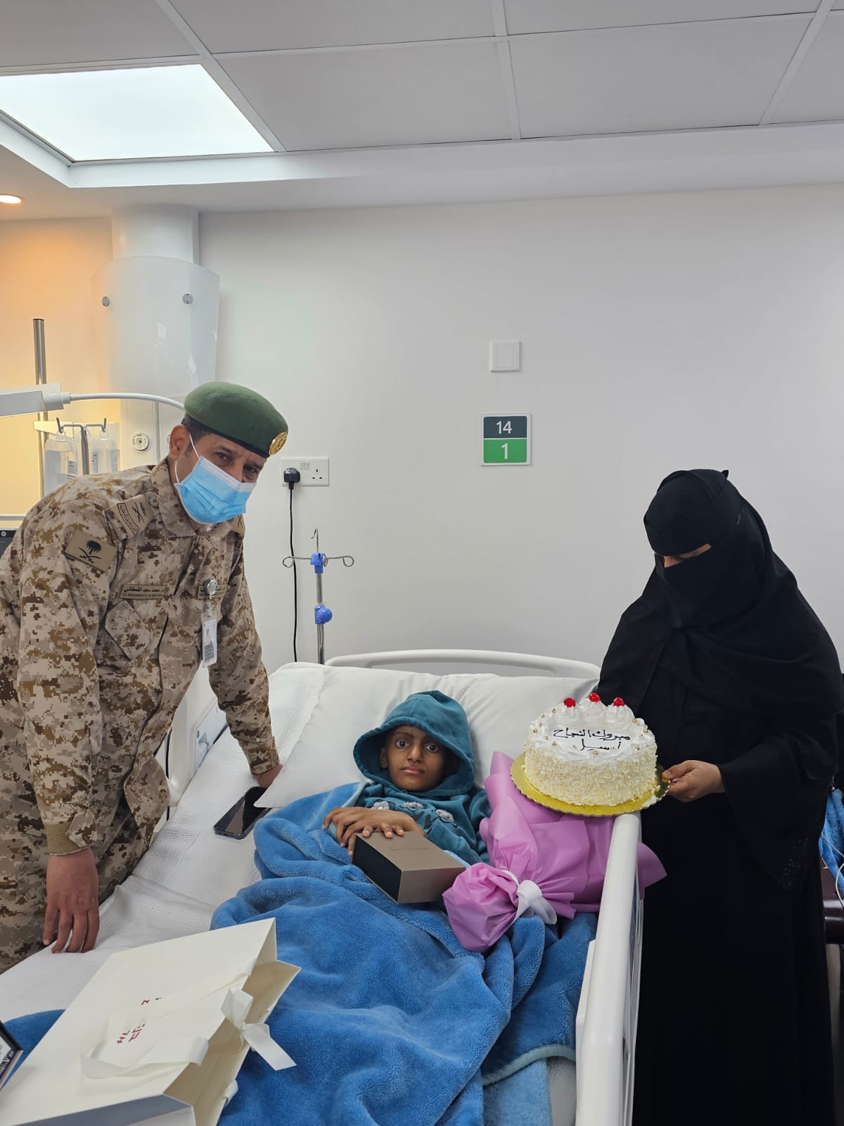قام سعادة مدير مستشفى القوات المسلحة بالجنوب اللواء الطبيب محمد بن سعيد القحطاني استشاري أورام وأمراض الدم للأطفال بزيارة مريضة تبلغ من العمر 13 عاما تتلقى العلاج في قسم أمراض الدم والأورام بالمستشفى وذلك للاطمئنان على حالتها الصحية حيث تخضع للعلاج والمتابعة الطبية تحت إشرافه المباشر.