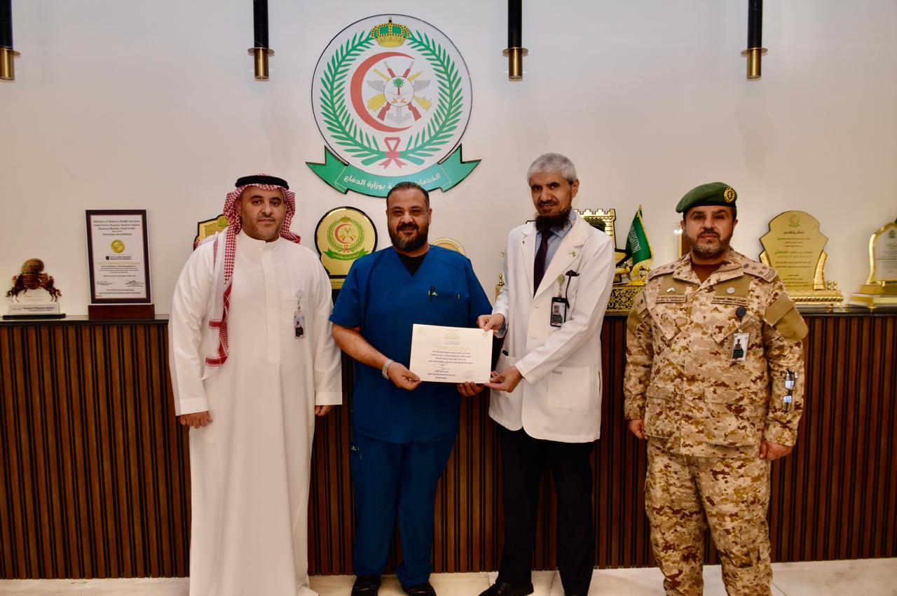 كرّم مدير مستشفى القوات المسلحة بالجنوب بالنيابة العميد الطبيب عايض بن عبدالله آل مرضي منسوبي إدارة التموين، تقديراً لجهودهم المتميزة ودورهم البارز في تجهيز ودعم مركز الإسناد الطبي المشترك بقيادة القوات المشتركة، وذلك نظير ما قدموه من عمل احترافي أسهم في تأمين وتوفير الأدوية والمستلزمات الطبية اللازمة بكفاءة عالية.