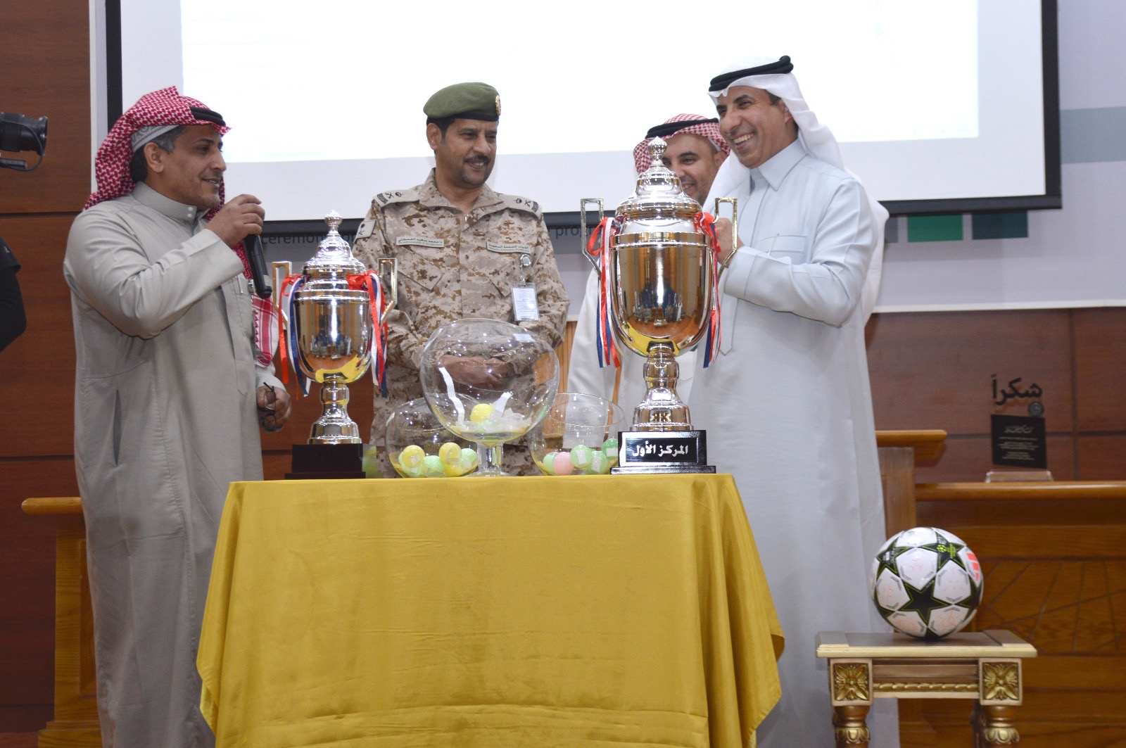 تلا ذلك إجراء مراسم قرعة البطولة، حيث قام سعادة اللواء القحطاني، برفقة الأستاذ معيض الشهري، بسحب القرعة وتحديد المجموعات المشاركة، وسط أجواء من الترقب والتطلع لانطلاق المنافسات .
