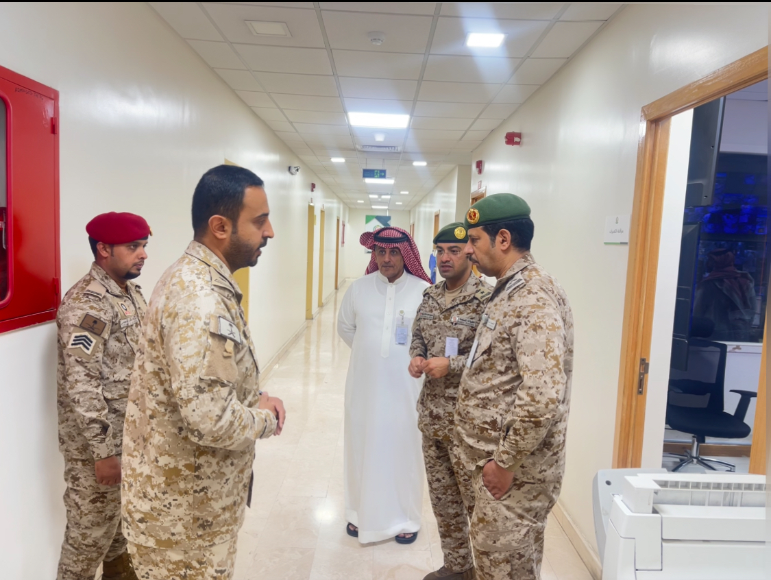 وكان في استقبال سعادته ضابط الأمن بالمستشفى وعدد من مسؤولي الأقسام المعنية حيث استمع إلى شرح مفصل عن آليات العمل اليومية وخطط الطوارئ وجهود القسم في الحفاظ على سلامة المرضى والزوار والمنسوبين.