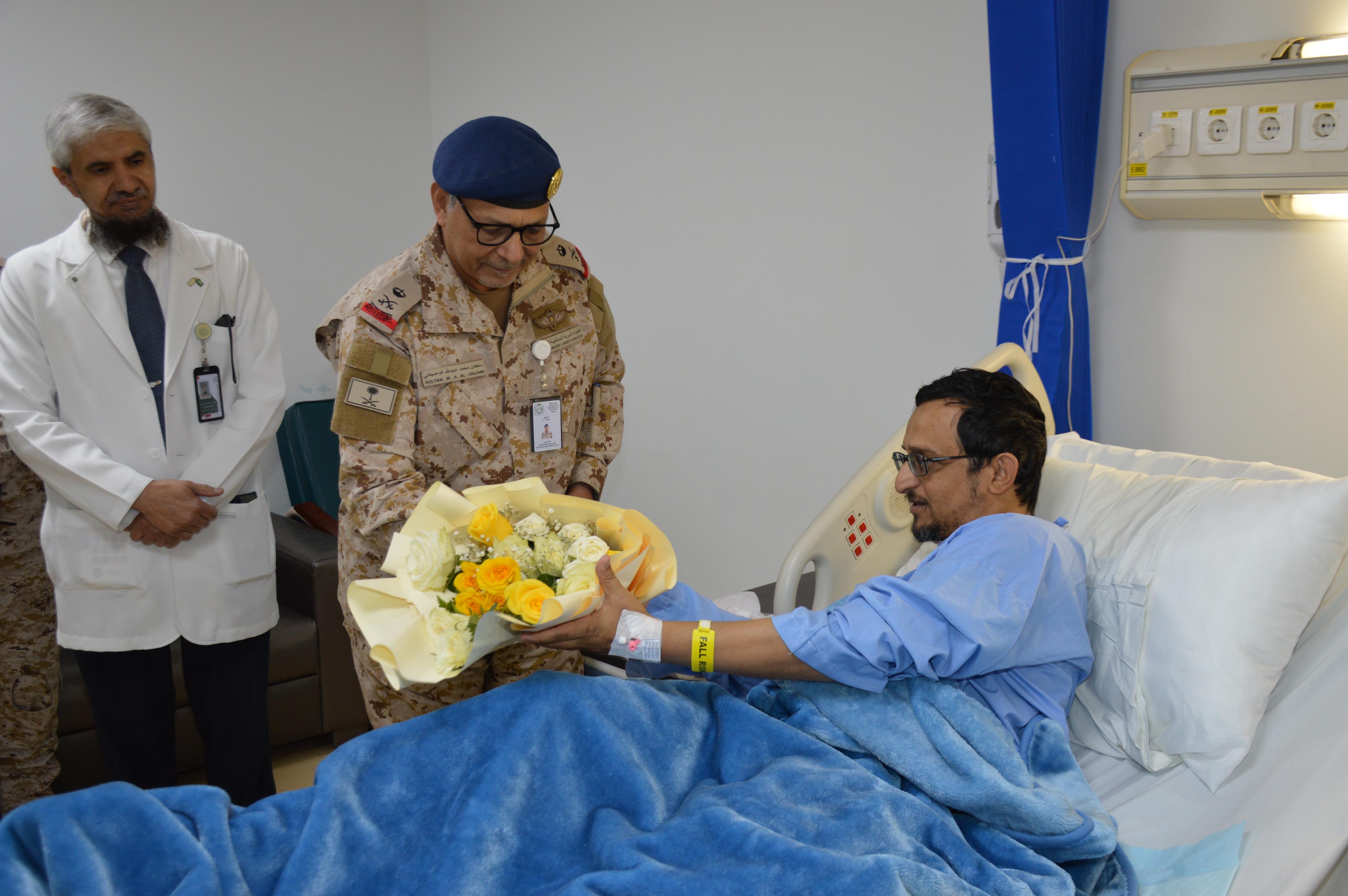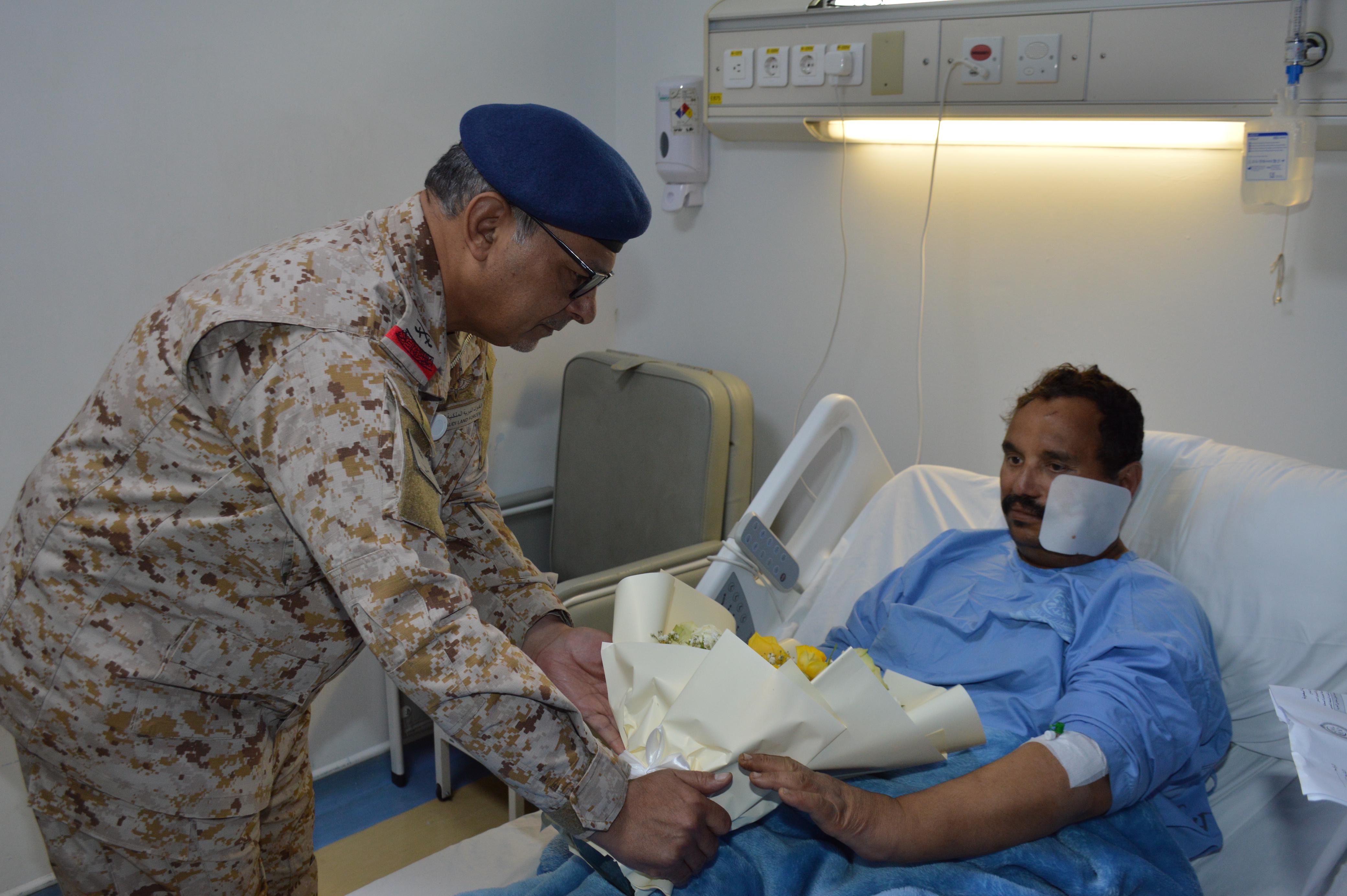 قام سعادة قائد المنطقة الجنوبية اللواء الركن سلطان بن محمد الدعجاني، صباح اليوم بزيارة عدد من المصابين المنوّمين في مستشفى القوات المسلحة بالجنوب للاطمئنان على وضعهم الصحي والوقوف ميدانياً على مستوى الرعاية الطبية المقدّمة لهم. حيث كان في استقبال سعادته مدير المستشفى بالنيابة العميد الطبيب عايض بن عبدالله آل مرضي