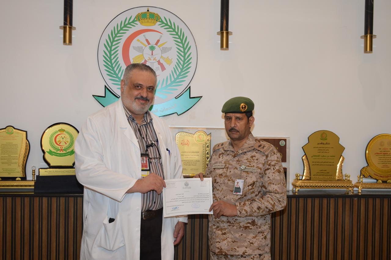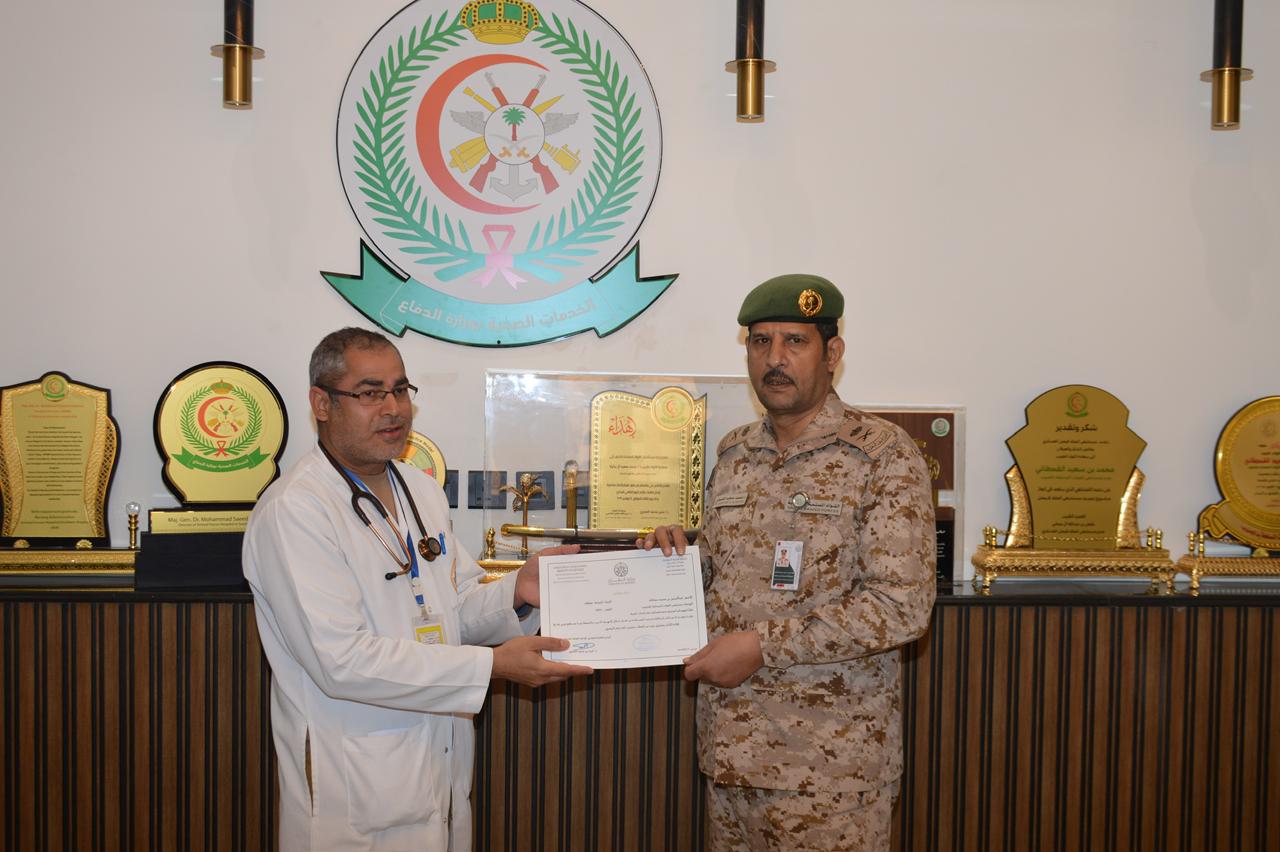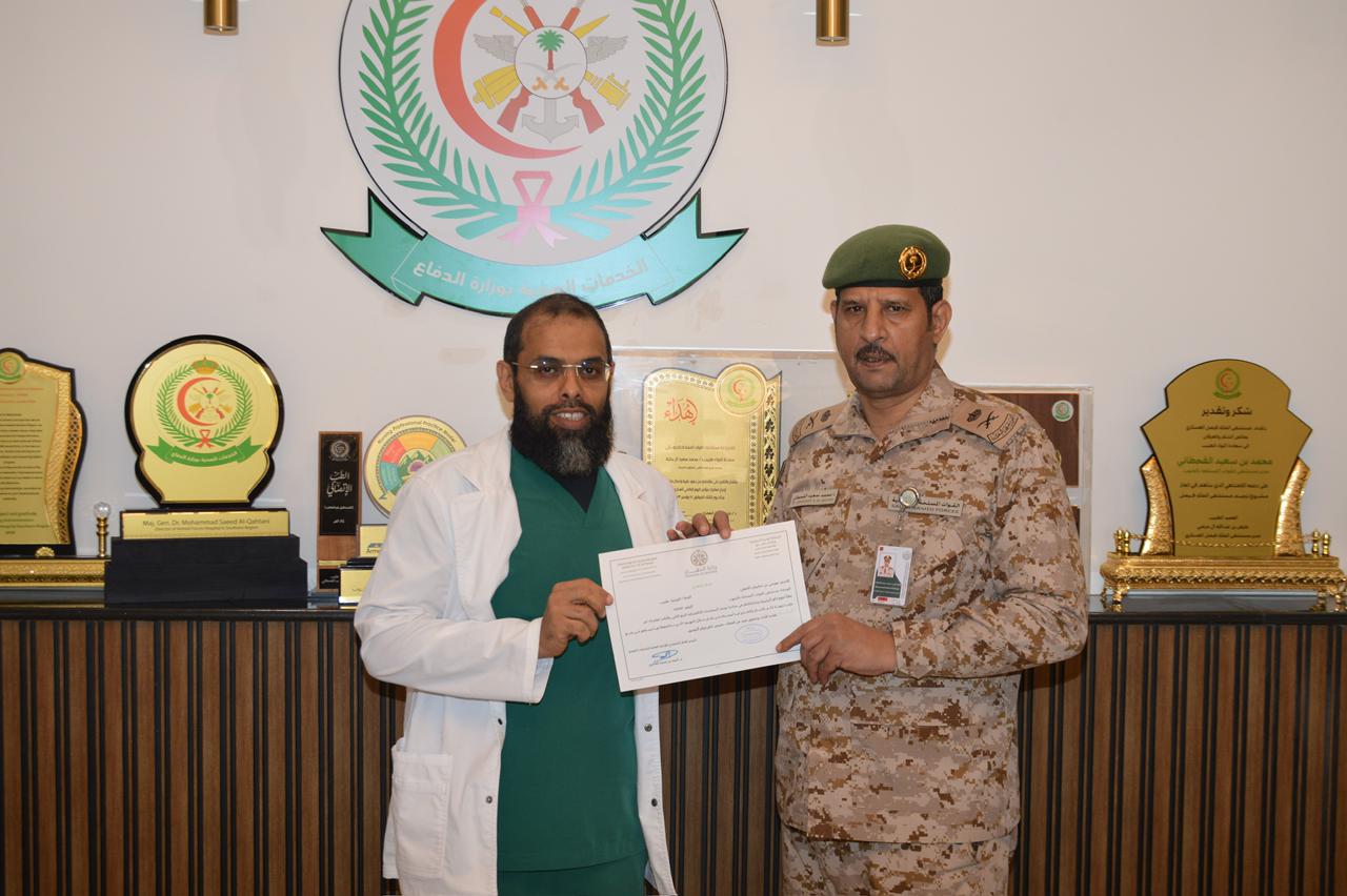 ضمن برنامج «معاً – تقدير وتحفيز»، سلّم سعادة مدير مستشفى القوات المسلحة بالجنوب اللواء الطبيب محمد بن سعيد القحطاني عدداً من الأطباء من منسوبي المستشفى شهادات شكر وتقدير، مقدّمة من سعادة المدير العام التنفيذي للإدارة العامة للخدمات الصحية الدكتور أحمد بن محمد العامري، وذلك تقديرًا لجهودهم المهنية المتميزة وما قدموه من عطاء وإسهامات فاعلة في تحسين مستوى الخدمات الصحية .